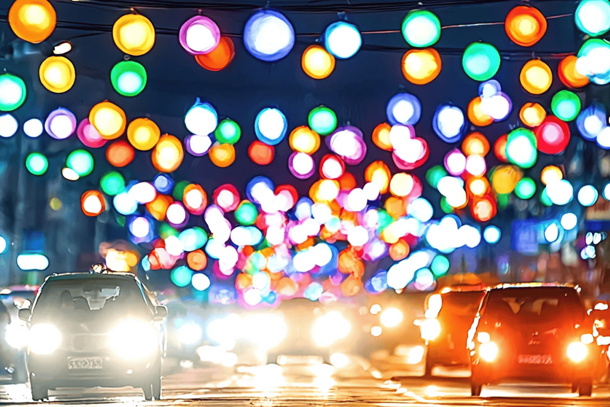 Bright lights, such as sunlight or headlights, cause discomfort and glare.